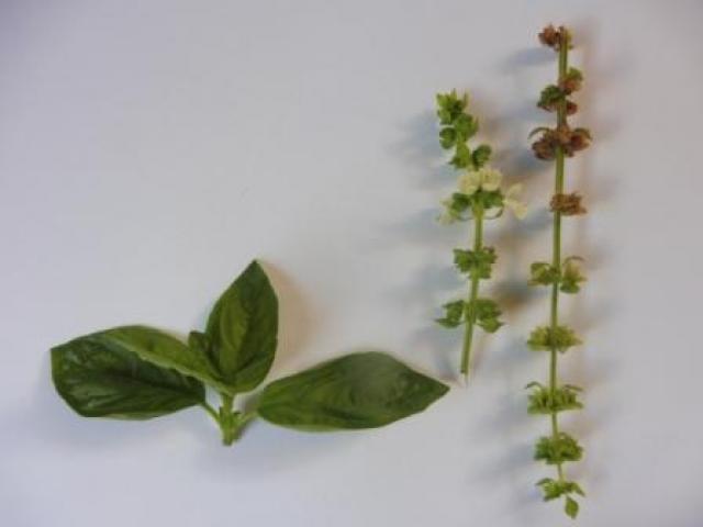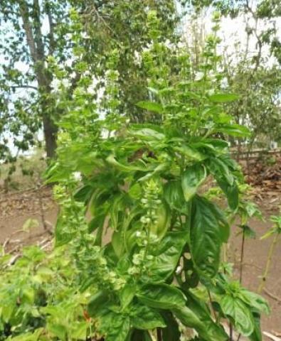 Registramos tres variedades de O. basilicum en Nicaragua: a) de hojas finas, llamado Island Basil en Laguna de Perlas, b) de hojas grandes, de color verde más pronunciado y c) de hojas púrpuras, conocido como albahaca morada (ver fotos abajo).