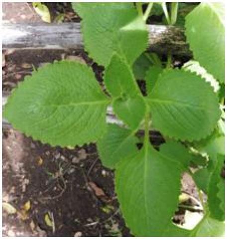 Es una planta perenne de hojas carnosas, vellosas y tallo anguloso. Puede alcanzar 1 metro de altura. La hojas son dispuestas en cruz con pares de hojas opuestas (ver foto).