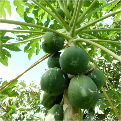 Cocina: Consumido como fruta fresca, almíbar, jaleas, ensalada y bebidas. La papaya verde se consume cocido en guisos o en forma de cajeta. Las hojas se utilizan para envolver la carne y suavizarla.