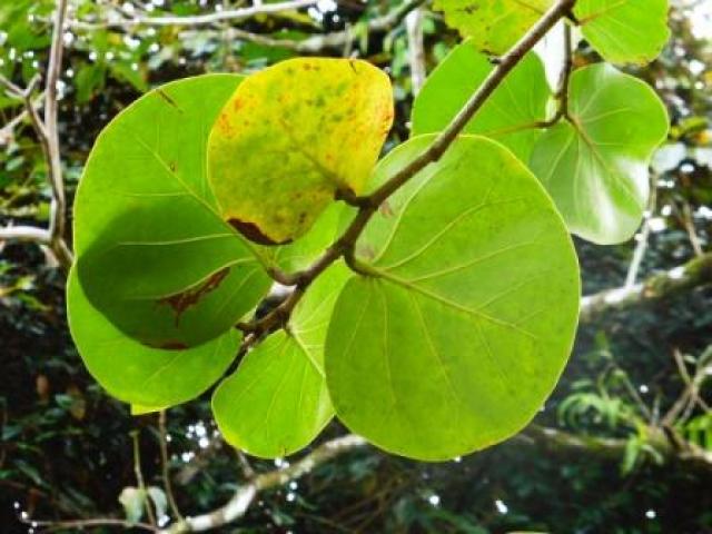 El nombre uva de playa proviene por la forma del racimo que recuerda a la uva de la vid, pero aparte de esto no tiene nada que ver con ella. Crece silvestre en las playas, pero también se adapta al interior y se puede observar en los jardines de Laguna de Perlas y Wawashang.