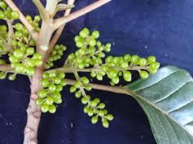 Los frutos son del tipo drupa de 4 mm de largo. Son verde primero, luego rojizo y negro.