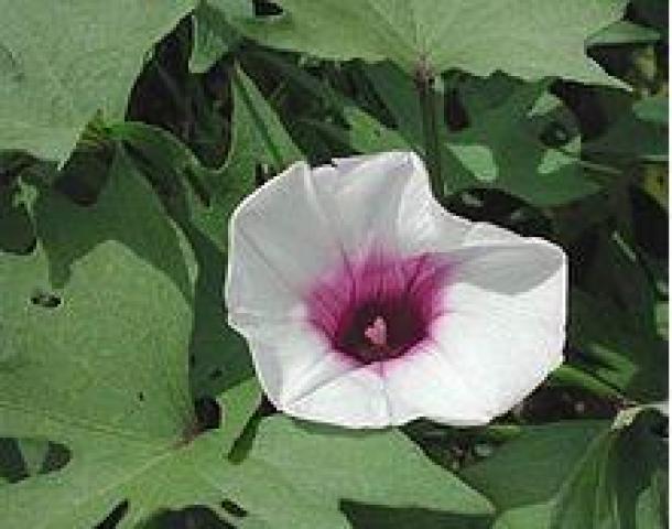 Enredadera perenne, porte rastrero, raíz tuberosa y comestible. Tallo delgado y ramificado. Las hojas son en forma de corazón. Las flores tienen sépalos oblongos, con las semillas en forma de cápsula ovoide de color café claro o pajizo.