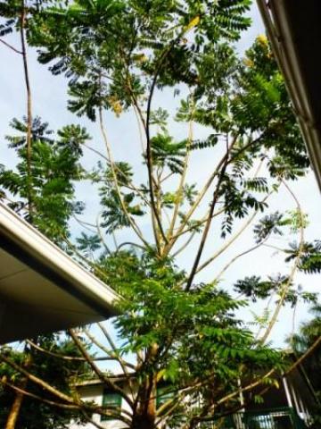 Es un árbol que puede alcanzar hasta 18 m de altura, aunque en promedio llega a los 12 m. Tiene hojas caducas, pinadas, compuesta cada una de 9 a 25 folíolos brillantes, elípticos u oblongos, finamente dentadas hacia el ápice. Produce flores pequeñas y blancas poco visibles en panículas terminales.
