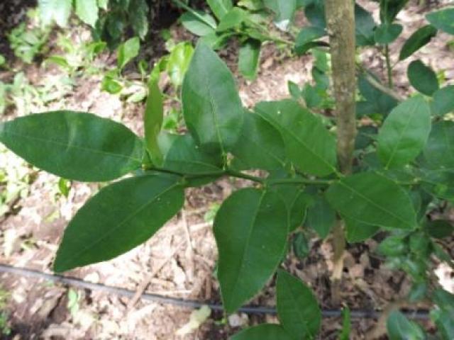Las hojas ovaladas de color verde semejantes a las del naranjo.
